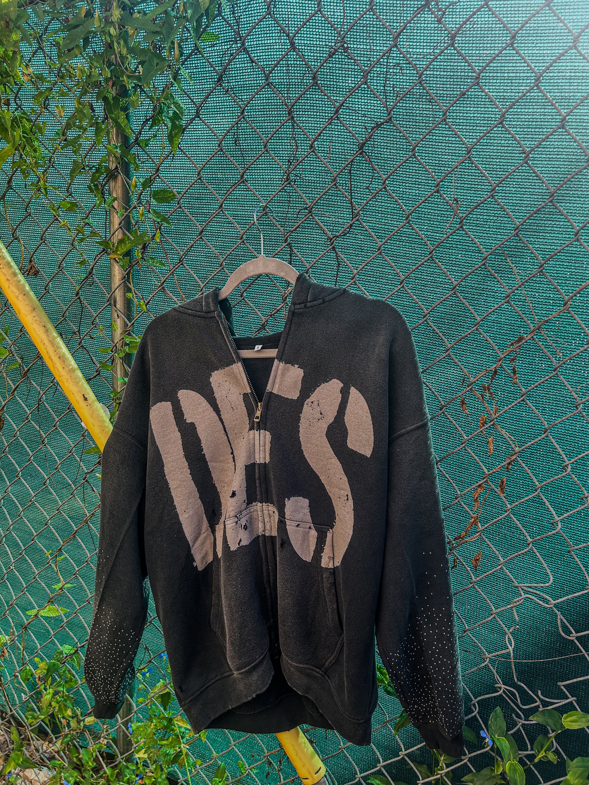 100% COTTON RHINESTONE GRAPHIC HOODIE
